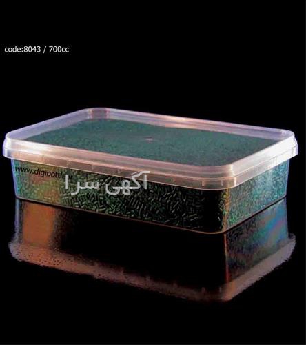 جنس ظرف از پلاستیک بوده و دارای رنگ شفاف میباشد.
