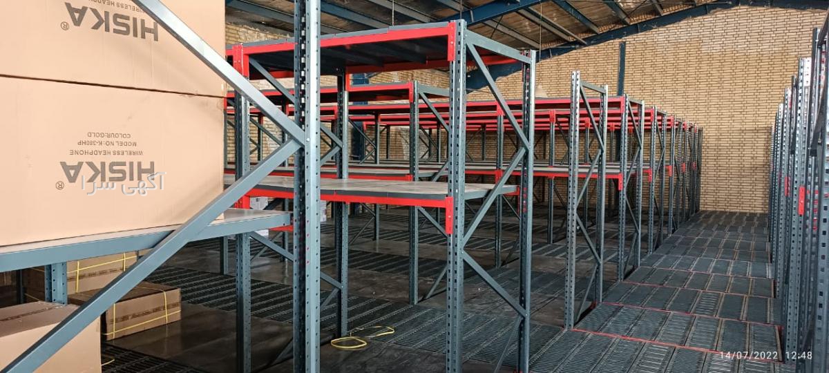قفسه سنگین و نیمه سنگین برای بالکن بندی برای انبار سوله شرکت کارخانه جات تحمل وزن در هر طبقه نیمه سنگین 300 کیلوگرم ارتفاع تا 6 متر