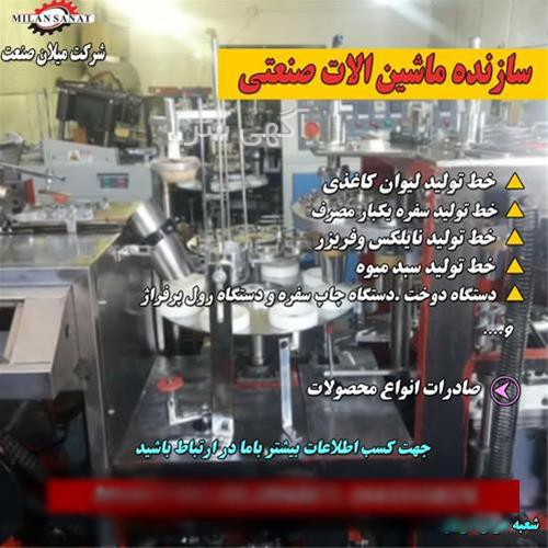 سازنده ماشین آلات صنعتی تولید محصولات یکبارمصرف و پلاستیکی: دستگاه: نایلون، سفره، نایلکس، زباله، فریزر، لیوان کاغذی، دستمال کاغذی، پرس، ظروف یکبارمصرف، تزریق پلاستیک، رول به رول سفره و فریزر و زباله، تزریق پلاستیک و... صادرات و واردات