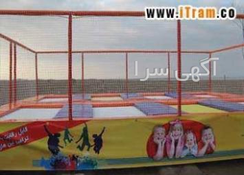 ترامپولین نو 8 تخته_کارنکرده_ به صورت کامل دارای بنر توری دورتادور تشک و...
