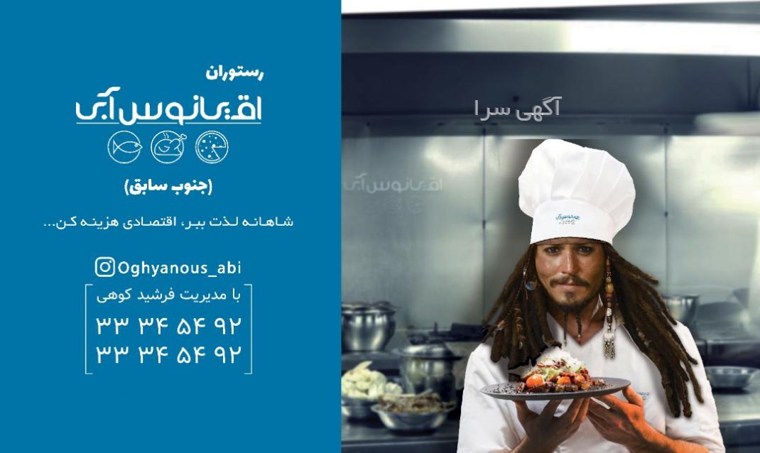 رستوران اقیانوس آبی(جنوب سابق)همه روزه به صورت یکسره از ساعت 11صبح الی 11شب