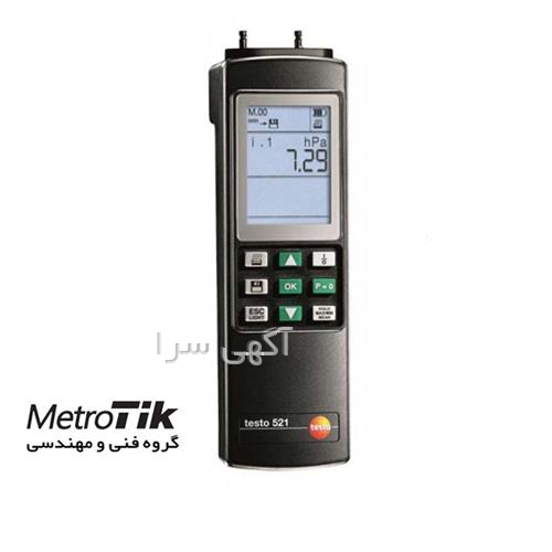 این دستگاه شامل سنسورهای گوناگونی می باشد که محدوده اندازه گیری آنها در بازه مختلفی است. محدوده اندازه گیری سنسور فشار پیزورزیتیو بین 0 تا 100 هکتوپاسکال (تستو 521-1 / -2)، 0 تا 2.5 هکتوپاسکال (تستو 521-3 **) می باشد. در سنسور فشار پیزوریزیس برای پروب های فشار خارجی این محدوده بین 0 تا 2000 هکتوپاسکال بوده و در سنسور سرامیکی برای پروب های فشار خارجی بین -1 تا 400 بار می باشد. همچنین در سنسور NTC بین -40 تا +150 درجه سانتی گراد قرار دارد.
