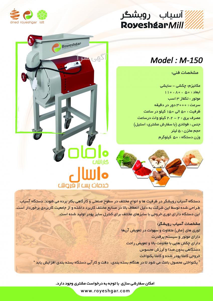 شرکت دانش بنیان رویشگر در راستای تکمیل سبد کالای خود اقدام به طراحی و ساخت انواع آسیاب صنعتی و نیمه صنعتی نموده است.
