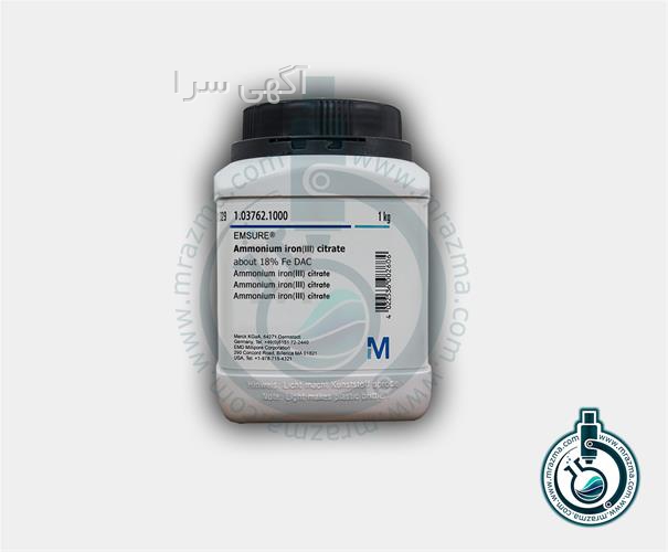 آمونیوم فریک سیترات مرک کد 103762 Ammonium iron(III) citrate با فرمول شیمیایی C₆H₈O₇*xFe*xH₃N از گروه نمک های آلی است. که در ساختارش دقیقاً سه گروه کربوکسیلی دارد. و جرم مولی آن متغیر می باشد. شکل ظاهری این ترکیب، پودر قهوهای مایل به قرمز است.