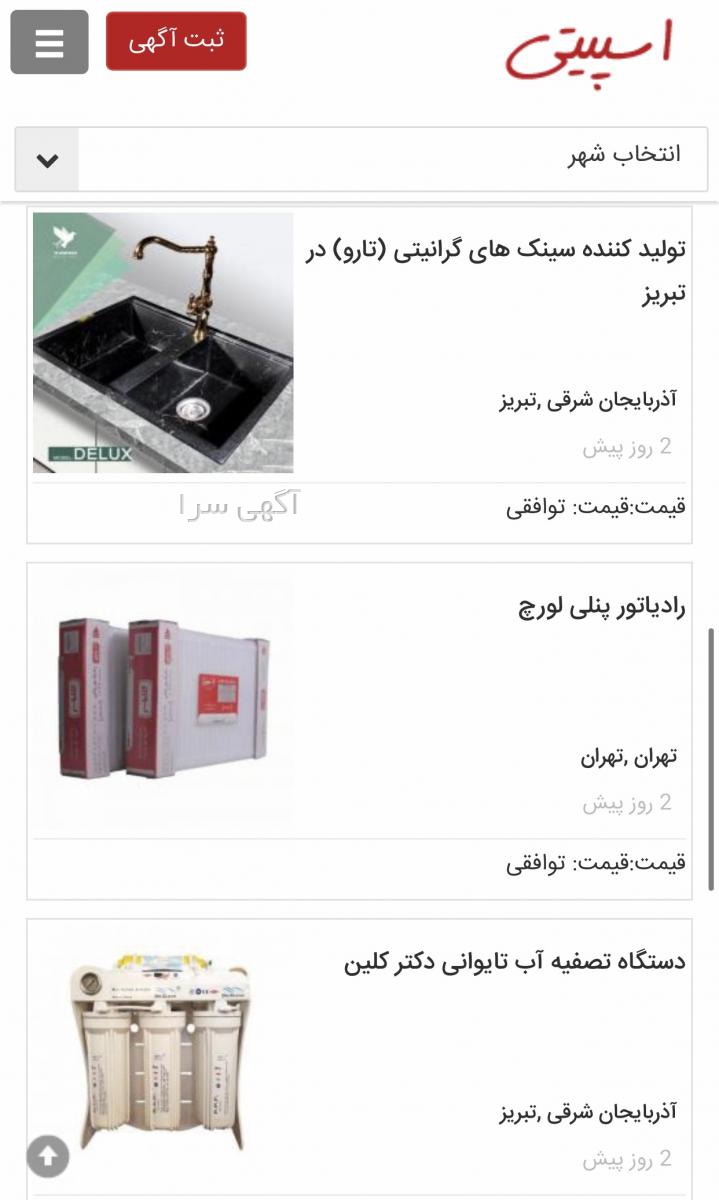 در این سایت که بازار عمده تاسیسات است فروشندگان کالاهای تاسیساتی از سراسر ایران می توانند اجناس خود را آگهی بکنند اینجا از سرمایش گرفته تا گرمایش موجود است