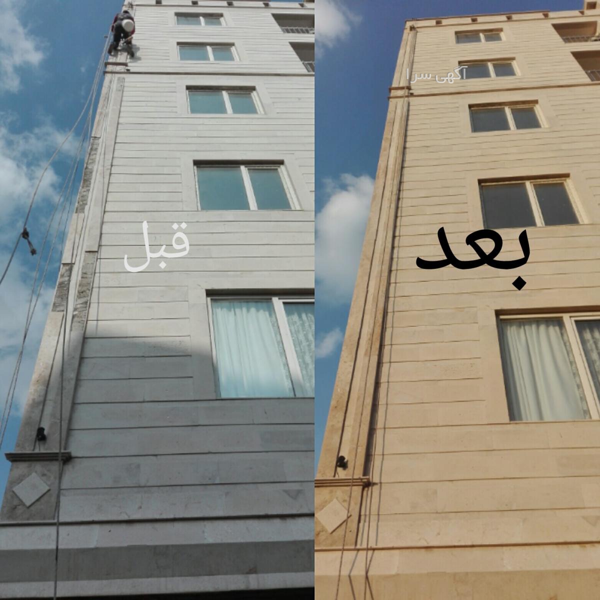 خدمات شامل ؛شستشوی انواع نما های شیشه وسنگ وکامپوزیت وسیمان وغیره