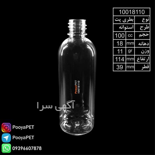 بطری پت استوانه 100 سی سی دهانه 18 شفاف
