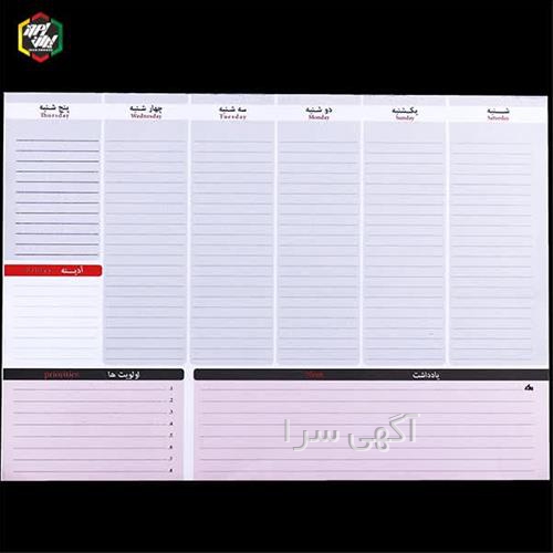 زیردستی تبلتی هفتگی 1403 در پنج رنگ موجود و قابلیت نصب پلاک جهت تبلیغات شما