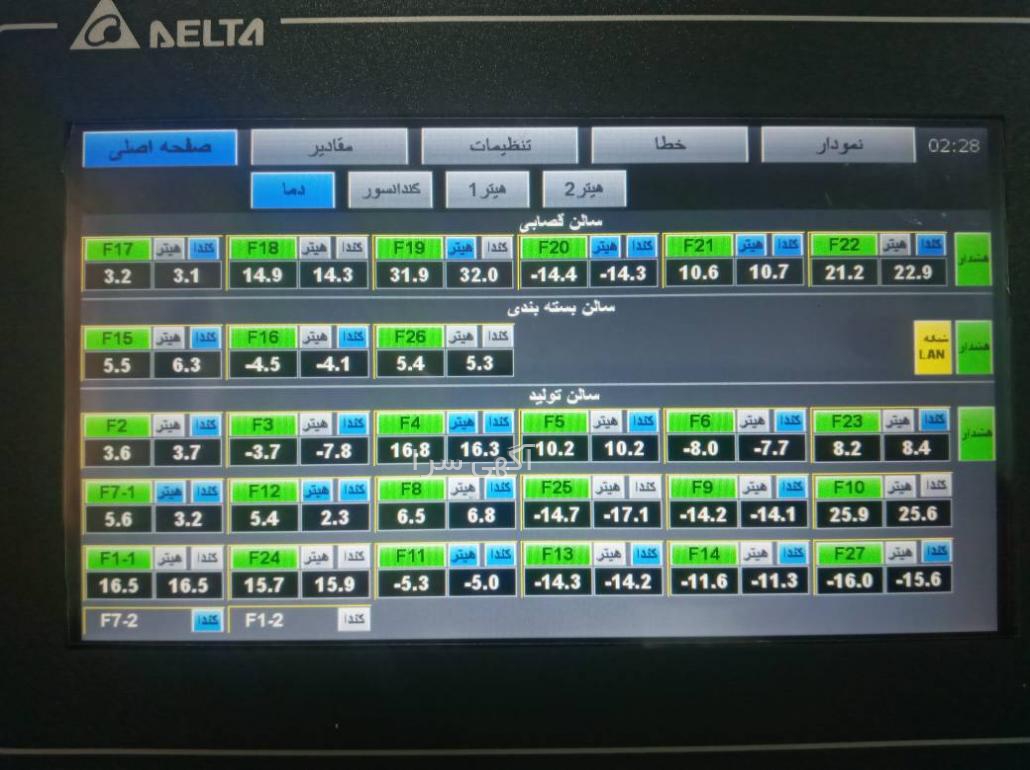به کمک این سیستم میتوان به شکل برخط تغییرات دمای هریک از سردخانه ها را پایش نموده و درصورت نیاز دمای هریک از سردخانه ها را کنترل نمود. همچنین با یکپارچه سازی عملکرد تمامی کندانسورها، میتوان مصرف انرژی را تا حدود 30 درصد کاهش داد.