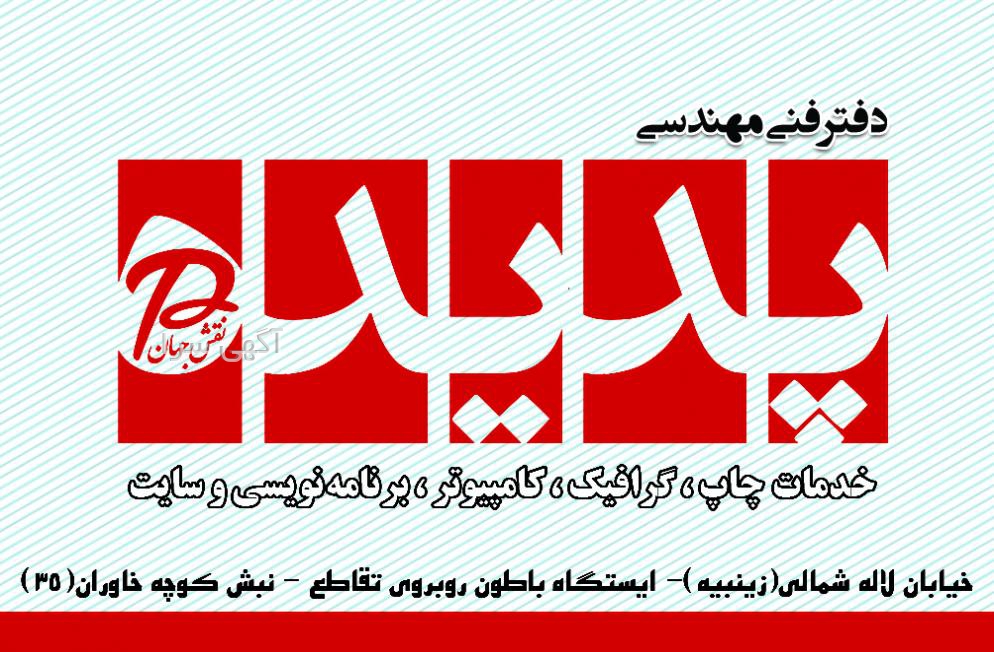 آدرس : اصفهان - خیابان زینبیه (لاله شمالی) ایستگاه باطون ، روبروی تقاطع نبش کوچه (35) خاوران، دفتر فنی و تایپ و تکثیر پدیده نقش جهان