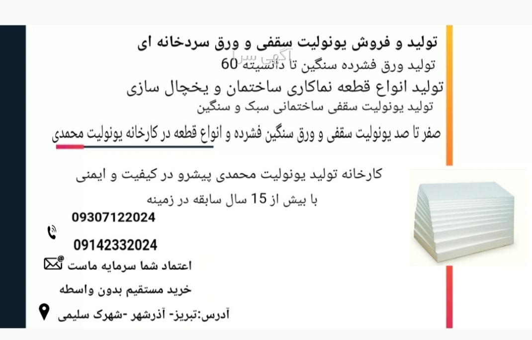 آگهی های یونولیت خدمات ساختمانی در استان آذربایجان شرقیآگهی های خدمات ساختمانی یونولیت در استان آذربایجان شرقیبازار فروش یونولیت سقفی