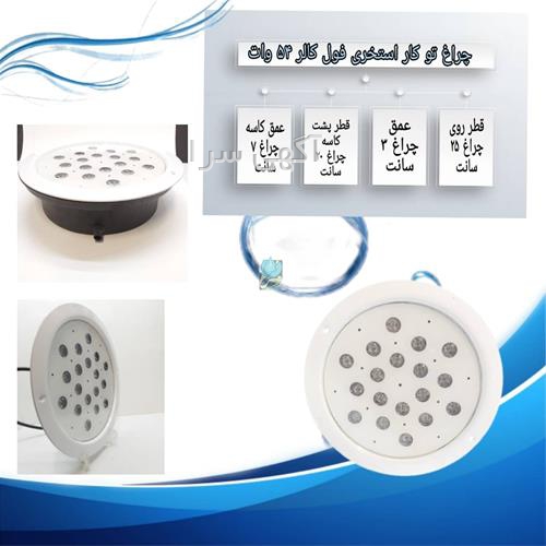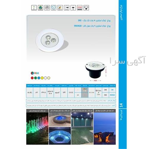 چراغ توکار استخری فول کالر 54 وات 12 ولت Emax مدل 54RERGB با قابلیت اتصال به انواع درایور رنگی تولید 7 رنگ نور مختلف را