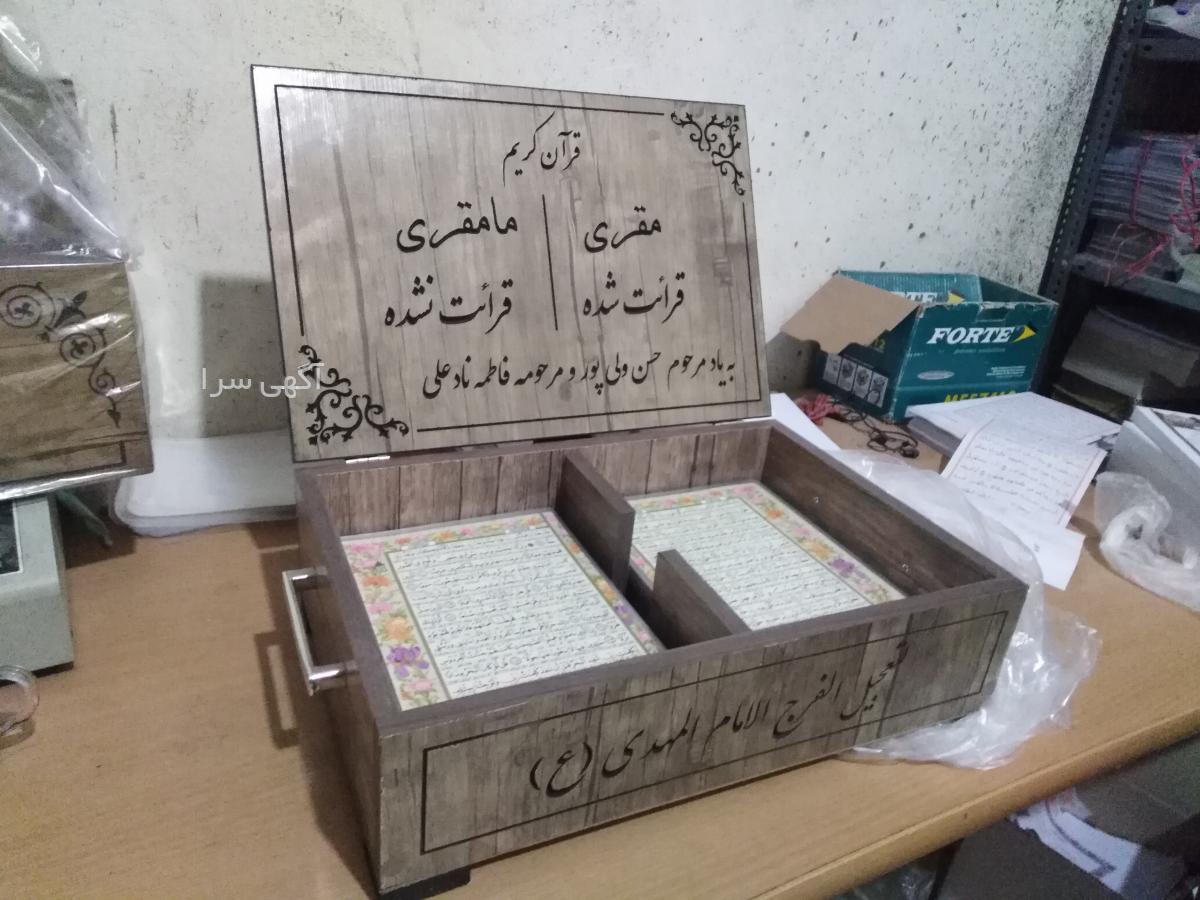 این قرآن دو نوع پرس مات و براق است که به انتخاب شما ارسال خواهد شد و قابلیت حک نام مورد نظر نیز روی جعبه وجود دارد.