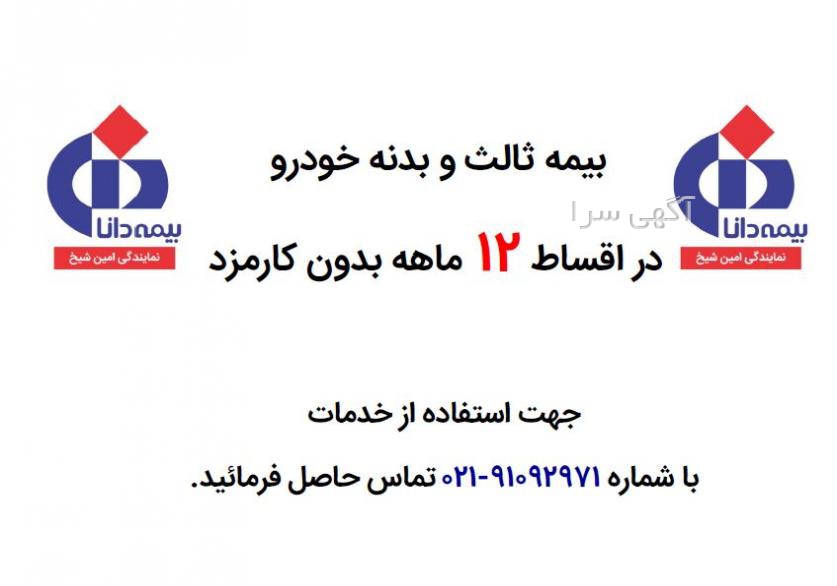 انجام کلیه بیمههای ثالث و بدنه در اقساط 12 ماهه بدون افزایش کارمزد ، بدون نیاز به ارائه ضامن و همچنین با اعمال تخفیف مازاد