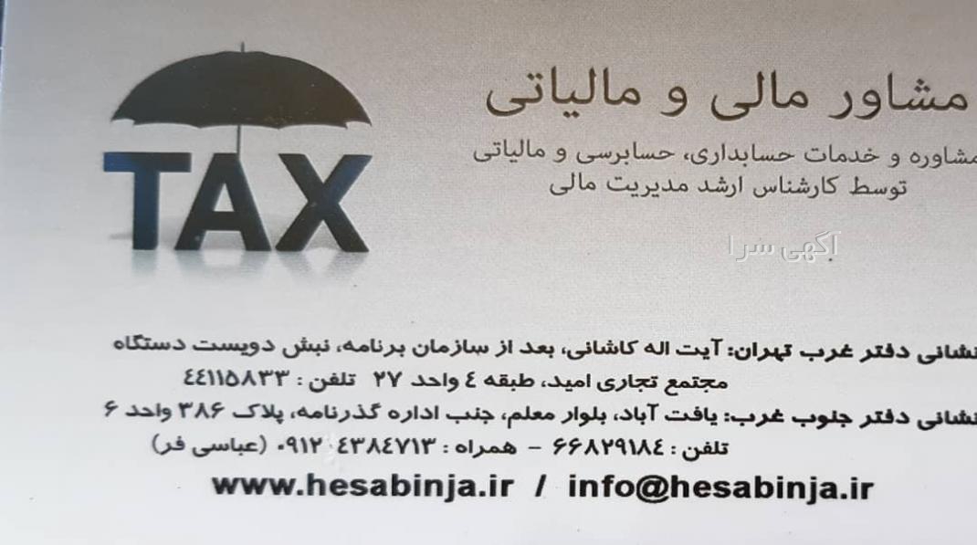 خدمات ما: تهیه اظهارنامه مالیاتی و صورتهای همراه آن ، تهیه دفاتر قانونی ، تهیه اسناد حسابداری به صورت روزانه و مکانیزه ، انجام انبار گردانی پایان سال ، تنظیم اظهار نامه ارزش افزوده برای هر فصل ، تنظیم گزارش های فصلی خرید و فروش ، دفاع از اظهارنامه مالیاتی شرکت ها در ادارات دارائی و مالیاتی ، تهیه بهای تمام شده محصولات و خدمات برای شرکت های تولیدی و خدماتی و بازرگانی ، تهیه و تنظیم لیست حق بیمه کارکنان و مالیات تکلیفی به صورت مکانیزه ، تهیه و تنظیم بودجه سالیانه ، تهیه و تنظیم لوایح و دفاعیه شرکت در جلسات هیئت حل اختلاف ، تهیه و تنظیم کلیه گزارش های مورد نیاز ممیزین مالیاتی و ممیزین سازمان تامین اجتماعی ، طراحی و اجرا کلیه سیستم های مالی و فرم های اداری مورد نیاز شرکت ها ، انجام امور حسابداری معوقه شرکت ها و سازمانها و حل اختلاف بین شرکا ، انجام امور اصلاحی مالی ، آموزش حسابداری به مدیران و پرسنل شرکت ها ، معرفی حسابداران و کارکنان مورد نیاز کلیه مشاغل و شرکت هاآدرس جنوب غرب تهران : یافت آباد بلوار الغدیر کوچه وقاری ساختمان ارغوان طبقه سوم واحد 302