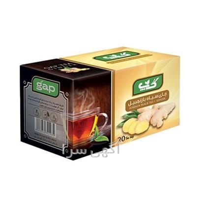 چای سیاه کیسه ای (تی بگ) با زنجبیل گپ .وزن خالص : 2± 48 گرم .وزن خالص هر کیسه : 2/4 گرم .تعداد : 20 عدد .