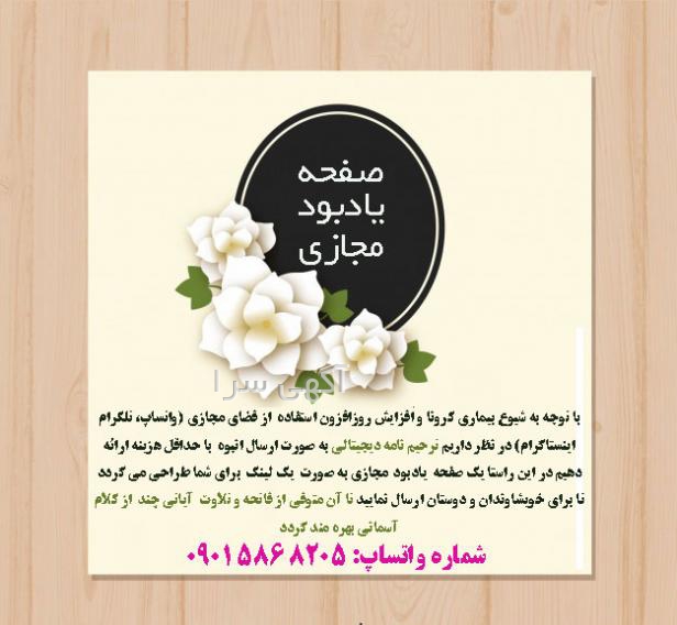 با توجه به شیوع بیماری کرونا و افزایش روزافزون استفاده از فضای مجازی (واتساپ، تلگرام، اینستاگرام) ترحیم نامه دیجیتالی به صورت ارسال انبوه با حداقل هزینه ارائه می گردد.