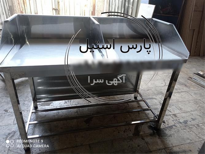 تولید و فروش میز کار مرغ فروشی برای پاک کردن مرغ و ماهی در مغازه و فروشگاه ها ساخته شده از ورق استیل با پایه های پروفیل استیل . به عبارتی میز مرغ پاک کنی دارای لبه های بلند می باشد تا در زمان قطعه بندی مرغ اضافات گوشت به اطراف میز نریزد . اگر چه میز کار استیل مرغ فروشی ابعاد استانداردی دارد اما براساس سفارش مشتری قابل تغییر می باشد.