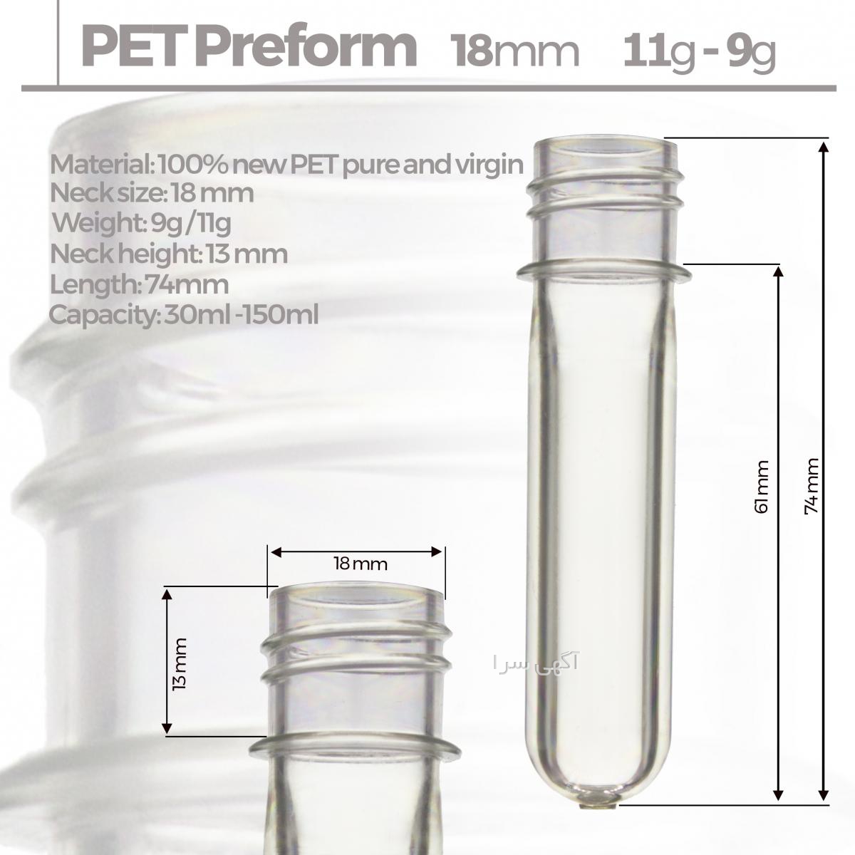 فروش پریفرم های دهانه 18 در وزن های 4 گرم تا 11 گرم بدون واسطه و مستقیم از تولید کننده