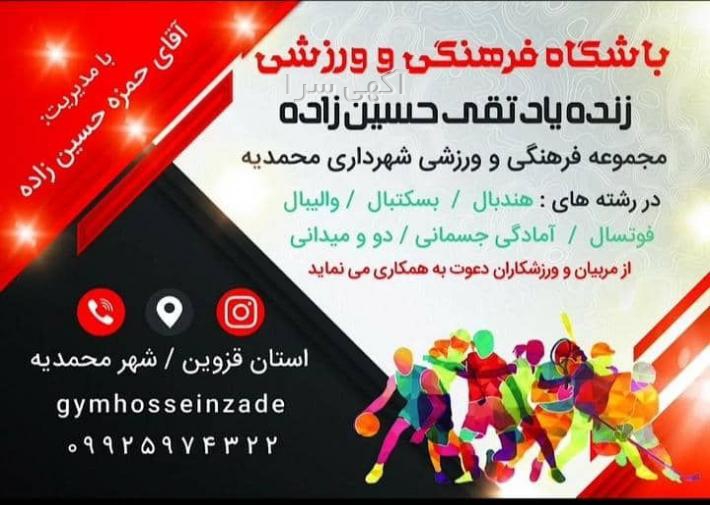 [[[باشگاه فرهنگی ورزشی زنده یاد تقی حسین زاده]]] در مجموعه فرهنگی ورزشی شهرداری محمدیه ،،، آماده همکاری با شرکتهای خصوصی و دولتی ، فدراسیونهای ورزشی ، باشگاههای خصوصی و دولتی ،،، در جهت رشد و شکوفایی فرهنگ ورزش در جامعه می باشد .