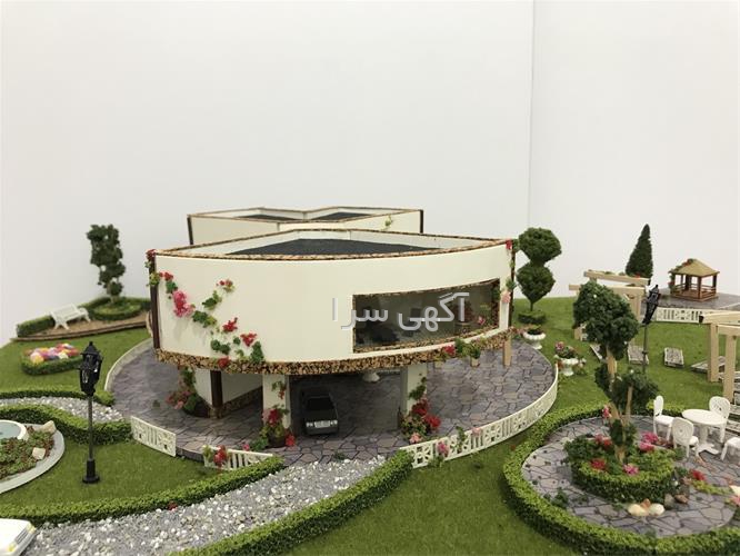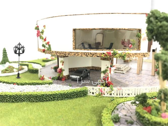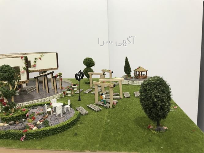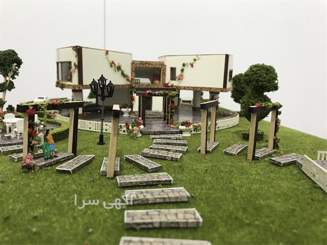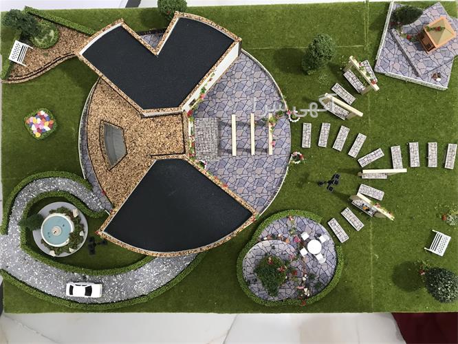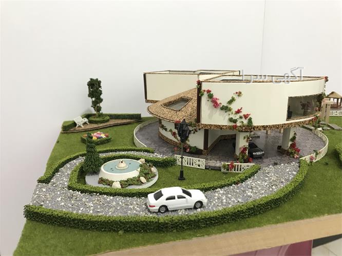 با طراحی فضا حیاط ویلا دارای ماکت ماشین آبنما و درخت و آلاچیق ماکت درخت