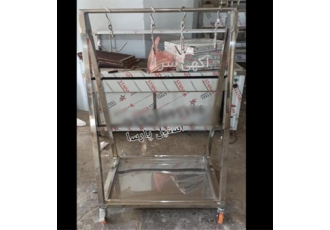 شاسی از پروفیل استیل 40*40--سینی به عمق 4 سانت--سینی از ورق 304--دارای چرخ صنعتی--دارای 4 عدد چنگک آویز گوشت--تحمل وزن بالا
