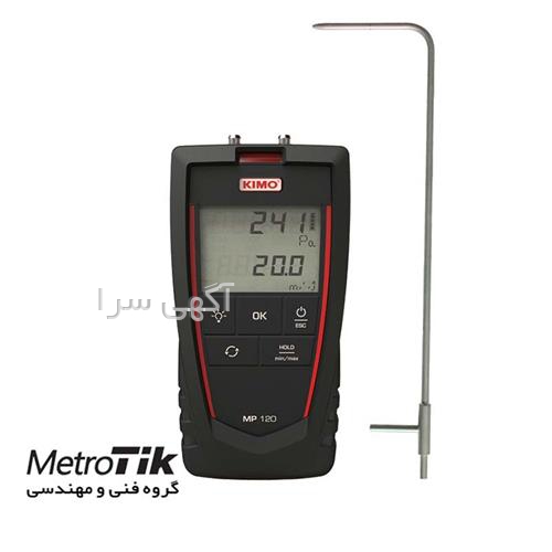 مانومتر دیجیتالی کیمو KIMO MP 120 با کاربری ساده و راحت خود عدد فشار را در واحدهای pa˛ inWg˛ daPa˛mmH2O˛ m/s و fpm اندازه می گیرد. این مانومتر فشار را در بازه pa 1000- تا 1000 پاسکال اندازه گرفته و علاوه بر فشار قادر است سرعت هوا را هم با واحدهای km/h˛ fpm˛ m/s بسنجد. بازه سنجش سرعت هوا در این ابزار از 0 تا m/s 40 می باشد. نمایشگر LCD این ابزار به صورت 4 خطی و دارای نور پس زمینه قابل تنظیم می باشد. علاوه بر این از قابلیت خاموشی خودکار بهره مند است و کاربر می تواند زمان آن را تا 120 دقیقه تغییر داده یا غیرفعال کند. علاوه بر قابلیت data hold˛ امکان محاسبه مقادیر مینیمم و ماکزیمم نیز دراین مانومتر وجود دارد.