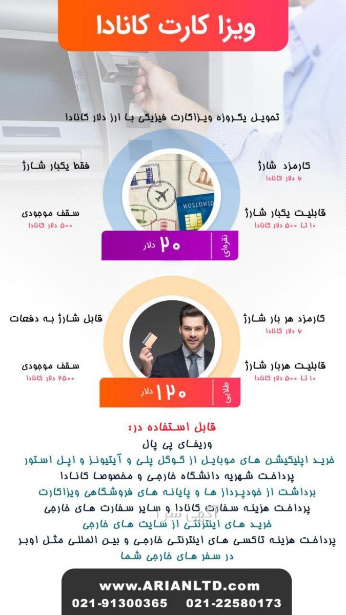 یکبار شارژ از 10 تا 500 دلار کانادا با 6 دلار کانادا کارمزد بانکی