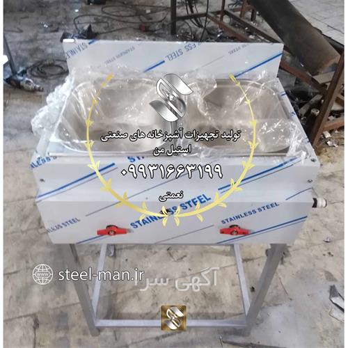 سرخ کن دو لگنه تولید تجهیزات آشپزخانه صنعتی استیل من بوده که به صورت پایه دار و رو میزی قابل تولید است.