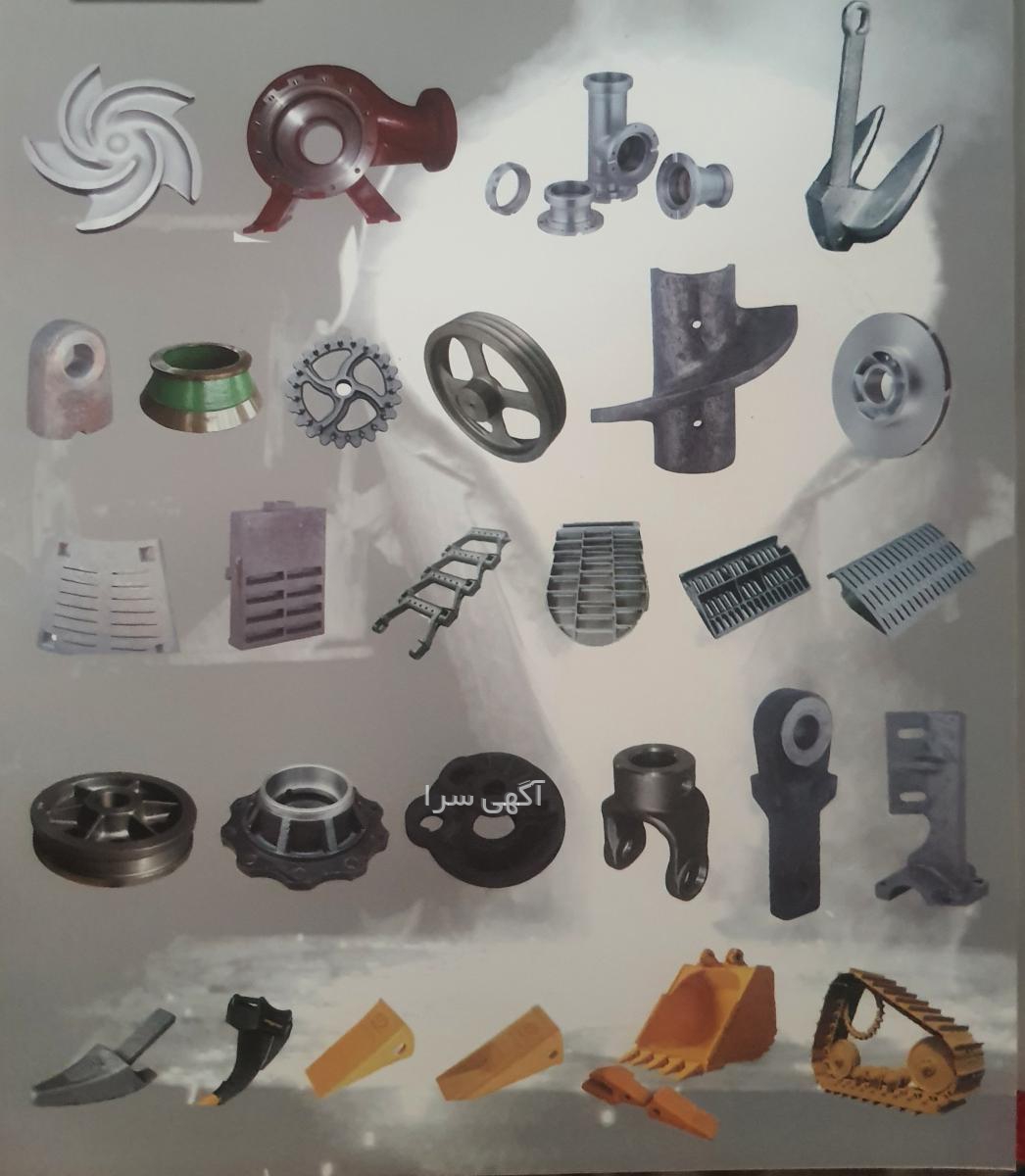 تولید انواع قطعات چدن داکتیل و فولادهای کربنی ساده و آلیاژی و مخصوص از وزن 1 تا 5000 kg با استفاده از کوره های ذوب و نگهدارنده القایی 2500kg با دو روش قالب گیری co2 و فوران