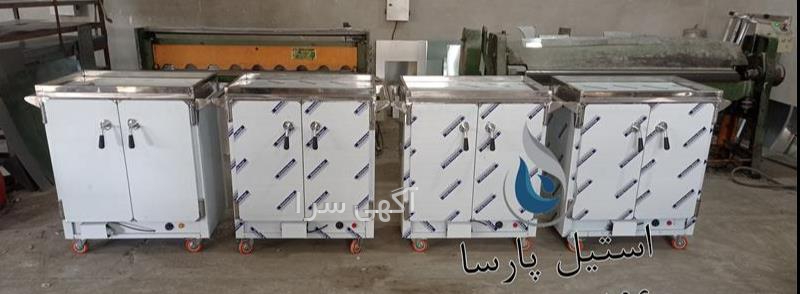 گرمکن غذا متحرک به صورت دو جداره با جداره داخلی از ورق گالوانیزه نسوز -عایق حرارتی از پشم شیشه یا پشم سنگ و جداره بیرونی از ورق استیل زد خش 430 یا 304 تولید می شود.