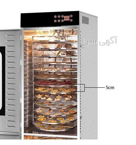 دستگاه خشک کن میوه با سینی های گردان در ظرفیت های 10 سینی ، 20 سینی ، 40 سینی با سینی های با موتور گردان به صورت اتومات میچرخند .