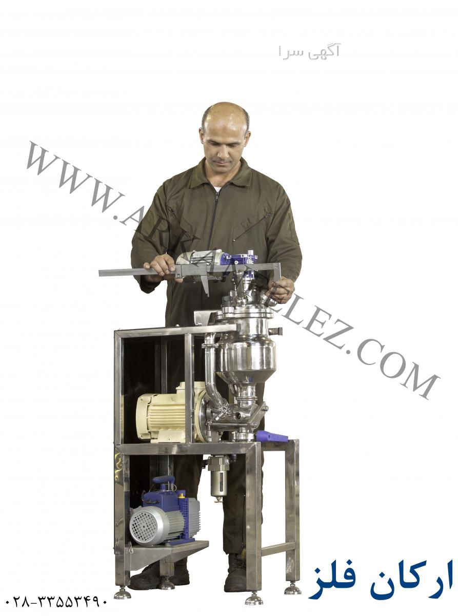 تمام استیل ، دارای میکسر (Vessel ) به حجم حدود 8 لیتر ( قابلیت تولید بچ به وزن حدود 1.5 لیتر) دو جداره