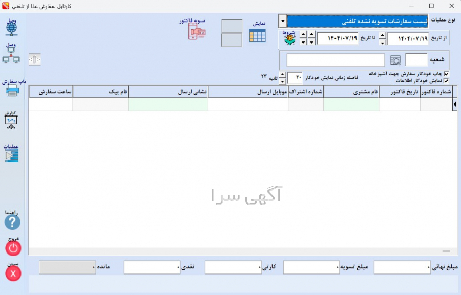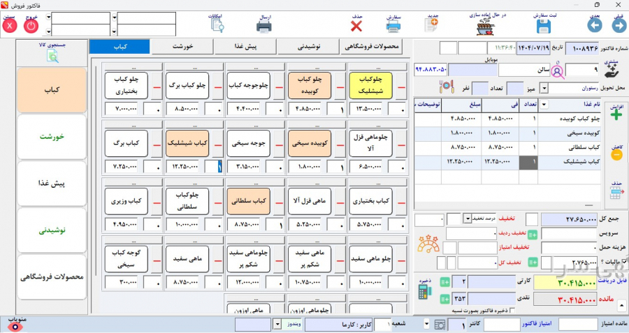 ثبت و مدیریت سفارشهای حضوری، بیرونبر و آنلاین