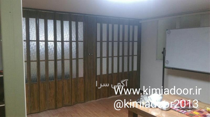 تولید کننده درب های آکاردئونی و اجرا کننده درب های آکاردئونی pvc پی وی سی تمام روکش طرح چوب ساده و پنجره دار در سراسر کشور