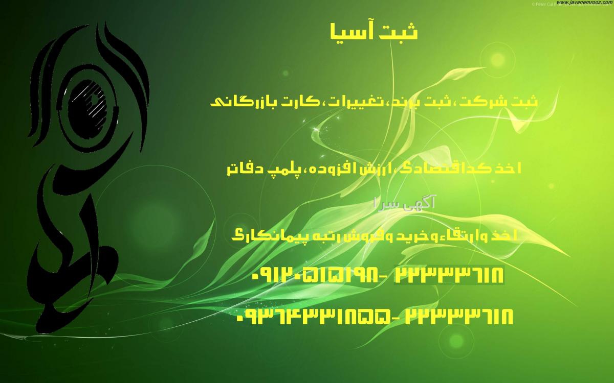 ثبت شرکت و تغییرات - کد اقتصادی -کارت پیمانکاری در کوتاه ترین زمان - ارزش افزوده - کارت بازرگانی - ثبت برند تجاری و لگو - تامین مهندس در کمترین زمان و مناسب ترین هزینه به هموطنان عزیز می باشد