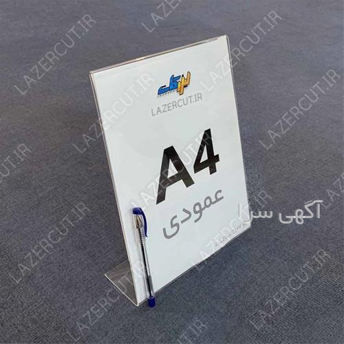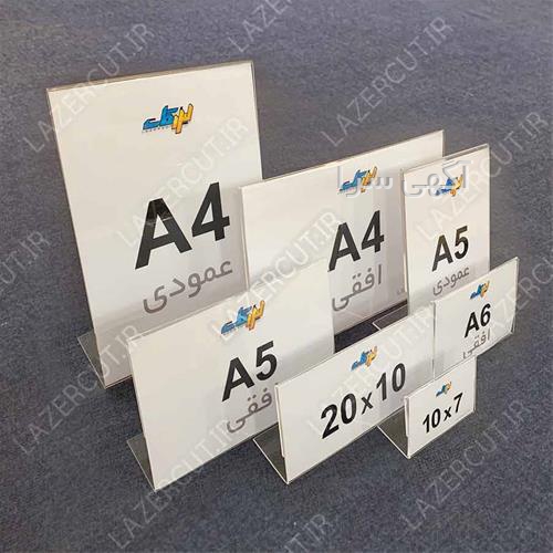 استند های رومیزی پلکسی گلاس در سایزهای زیر تولید می شوند: