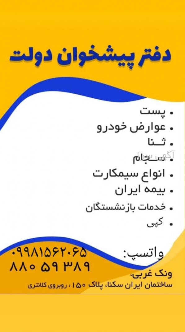 دفتر پیشخوان آرارات با شماره مجوز 72162... [نمایش کامل] آماده ارائه خدمات ذیل میباشد :
